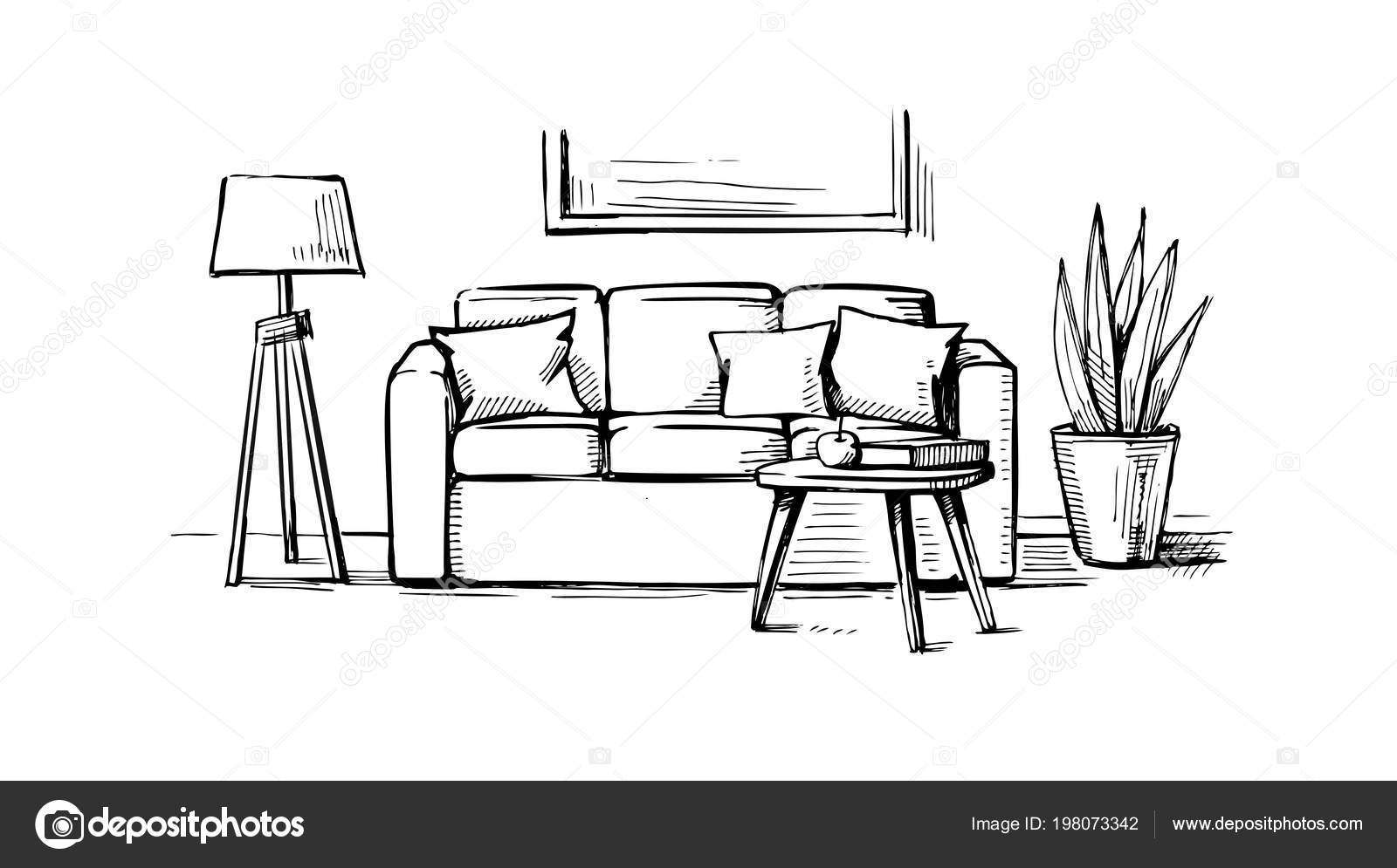 Interior Design Doodle Hand Drawn Vector Stock Vector Royalty Free 1105010363 Interior Design Luxury Living Room